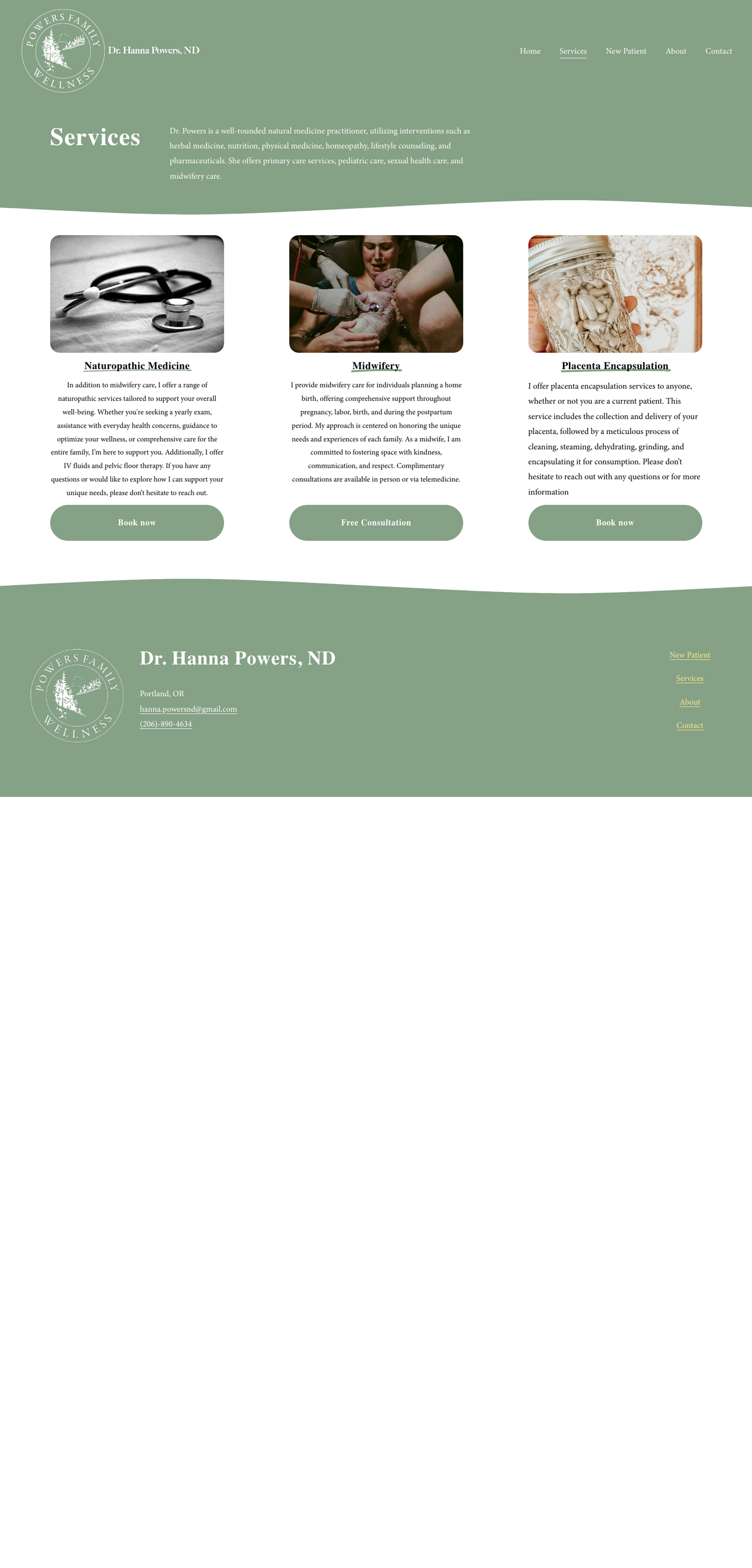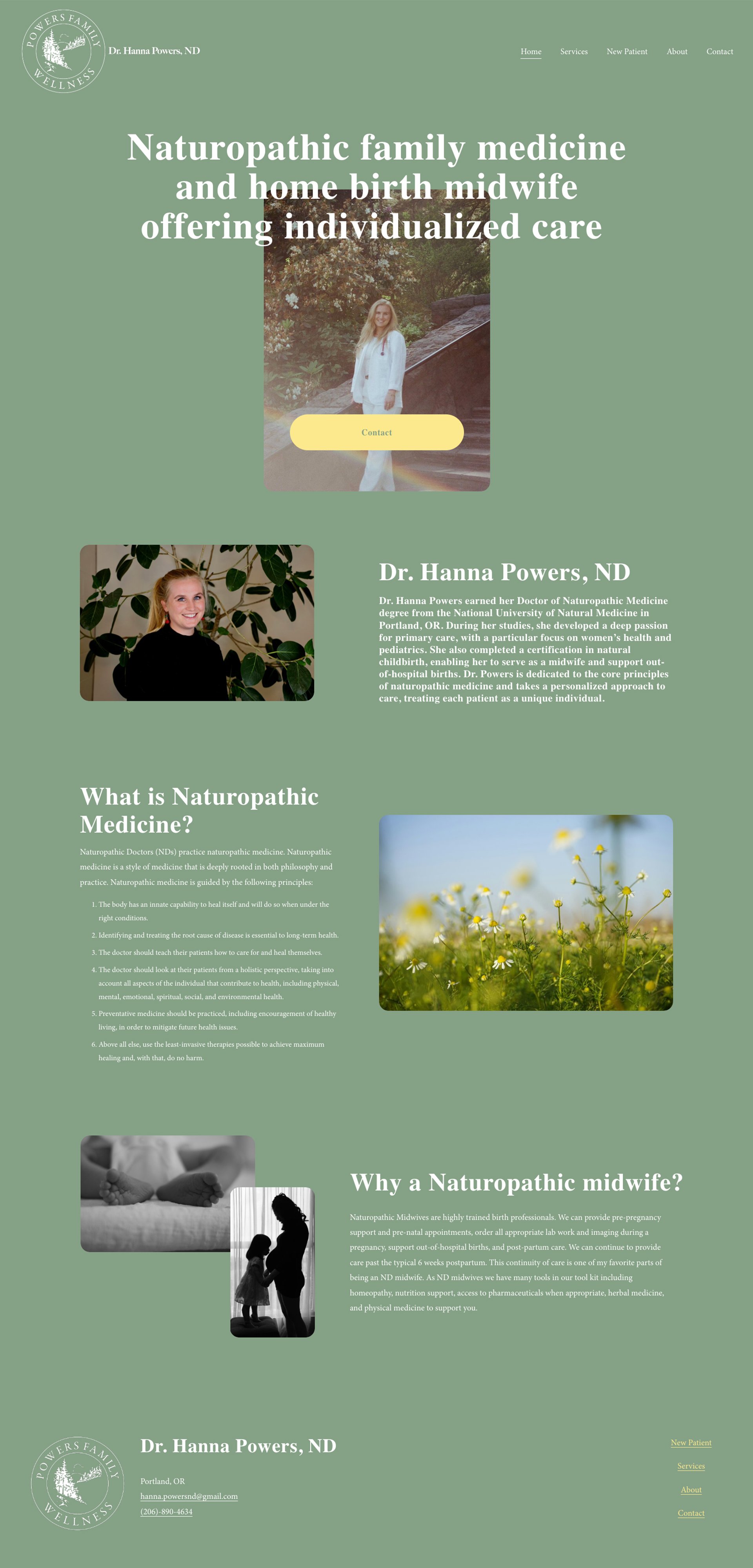 Dr. Hanna Powers is a Naturopathic Doctor who needed a personal website for her clients. She wanted to create a feeling of comfort and experience through her website.